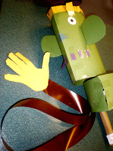 Local workers make Lucky Bag and Paper Plate Parrot puppets